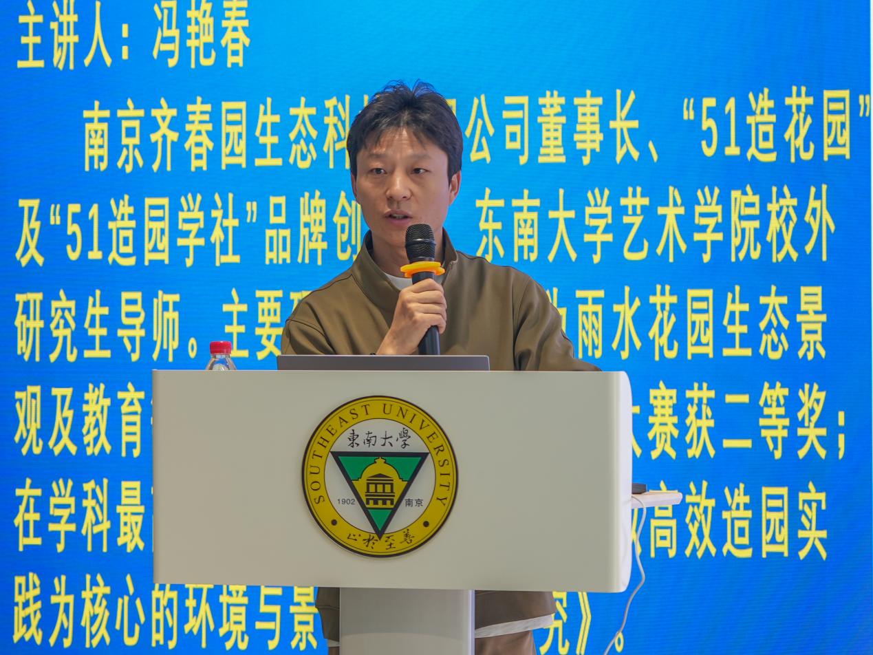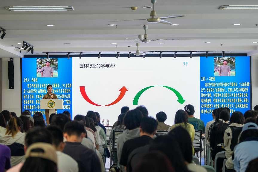 冯艳春老师是“51造花园”及“51造园学社”品牌创始人、东南大学艺术学院校外研究生导师。在讲座中,他结合自身创业经历和教学实践,从破局、重构、进化、突围、行动等五个方面阐述了空间艺术设计当前面临的挑战与机遇,解析了AI技术如何助力超级个体实现更加高效、个性、智能的设计与多重职业赋能。以“破局”开篇,冯老师指出人才需求的变化与AI技术的冲击正倒逼行业转型,兼具创意、技术与跨界能力的“超级个体”成为稀缺资源。借助AI工具成为个人能力的“外挂”“超级个体”可将设计、技术、材料等多学科知识融会贯通,快速生成方案。谈及“重构”,冯老师对比了匠人经验与AI量化分析的差异,AI技术正在推动行业从“造园”转向生态修复与文旅IP打造,并以某城市利用AI规划绿地为例,展现了数据驱动设计的潜力。在“进化”环节,冯老师展示了如何用AI进行实战场景拆解,将设计师拥有的独特审美哲学与AI的数据分析能力相结合,可事半功倍。最后,冯老师呼吁以“AI执行,人类决策”模式突围,AI处理数据生成方案,设计师聚焦于创意与人文关怀,鼓励师生切入智慧城市、元宇宙虚拟景观等新兴赛道,并以“千磨万击还坚劲”激励青年拥抱变革。之后,冯艳春老师带领同学们来到室外,演示了先进的造园工具,同学们对这样的新科技产生了浓厚的兴趣并积极参与互动。
