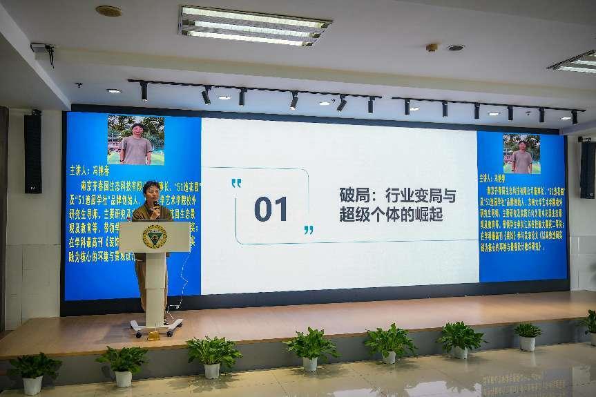 4月16日下午,由304永利集团官网入口主办的“空间艺术设计的新拐点——AI赋能‘超级个体’时代 ”专题讲座在求真·求美·创新工坊举行。学院邀请南京齐春园生态科技有限公司董事长冯艳春担任主讲嘉宾,304永利集团官网入口200余名师生参加了本次讲座,讲座由304永利集团官网入口党总支副书记邵叶鑫主持。